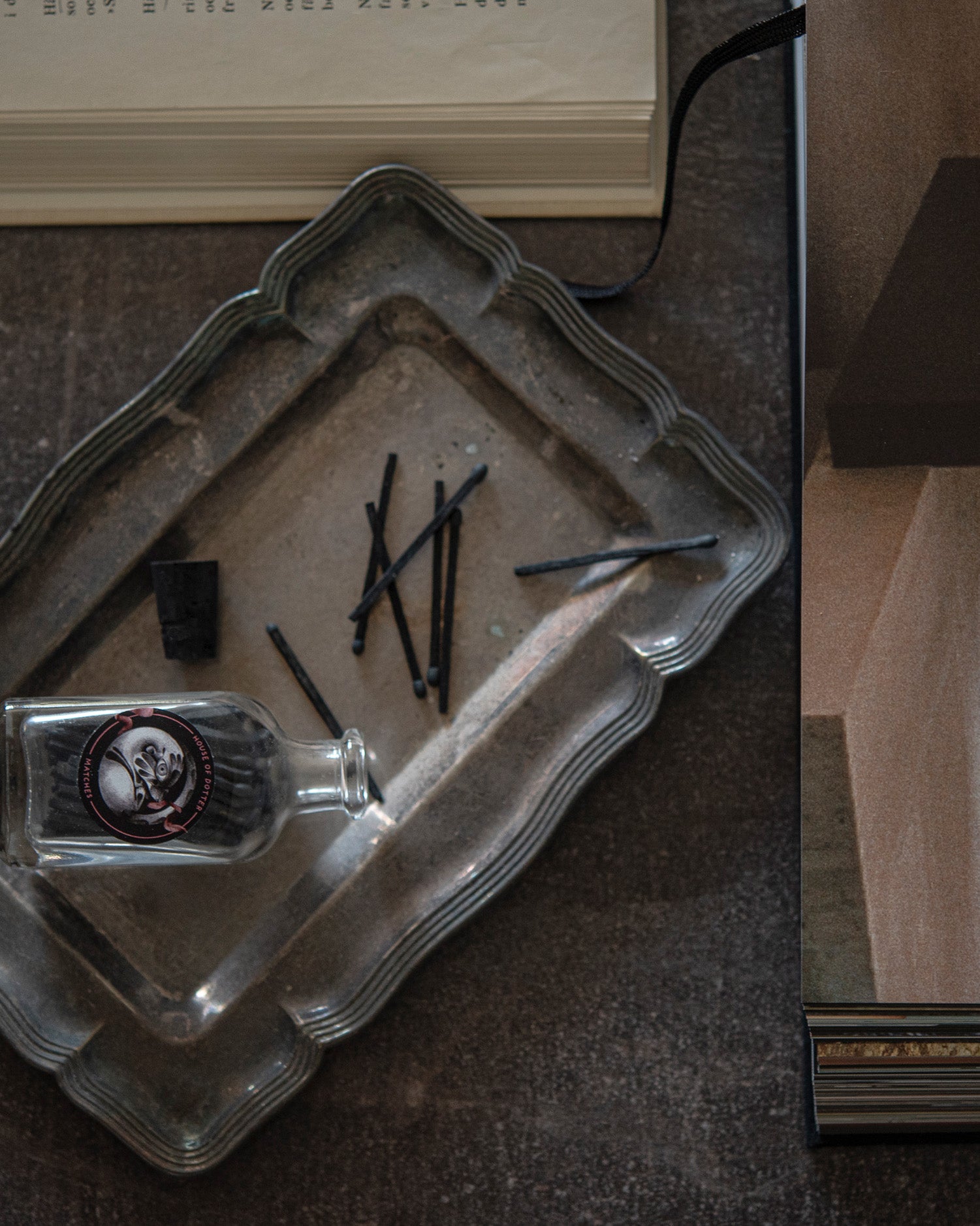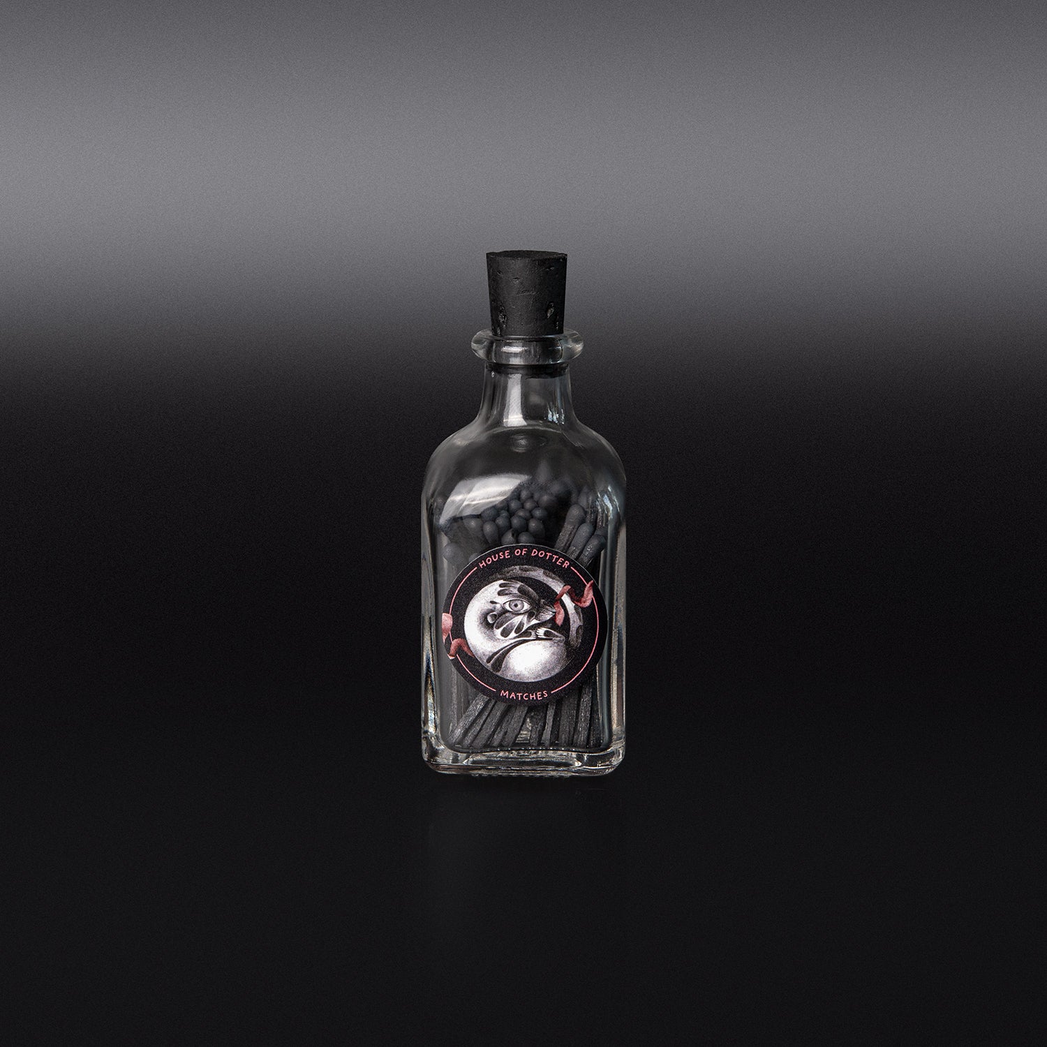Black matchsticks in a decorative glass jar with cork lid, designed to complement your space. Available in several variations—get your matching scented candle!